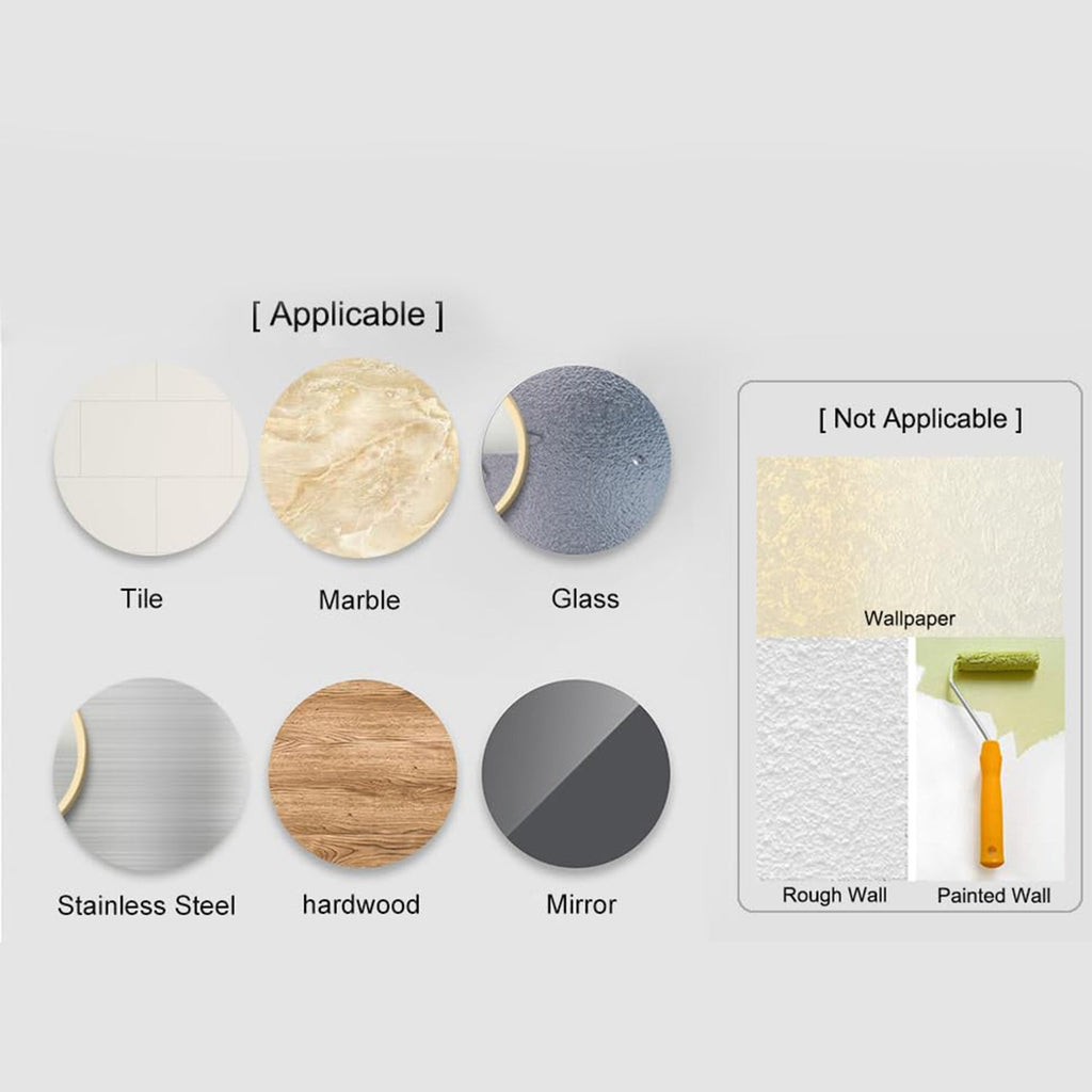 Mounting Surface: Smooth, dry, non-porous walls (ceramic tile, glass, mirror, metal, sealed laminate/acrylic)